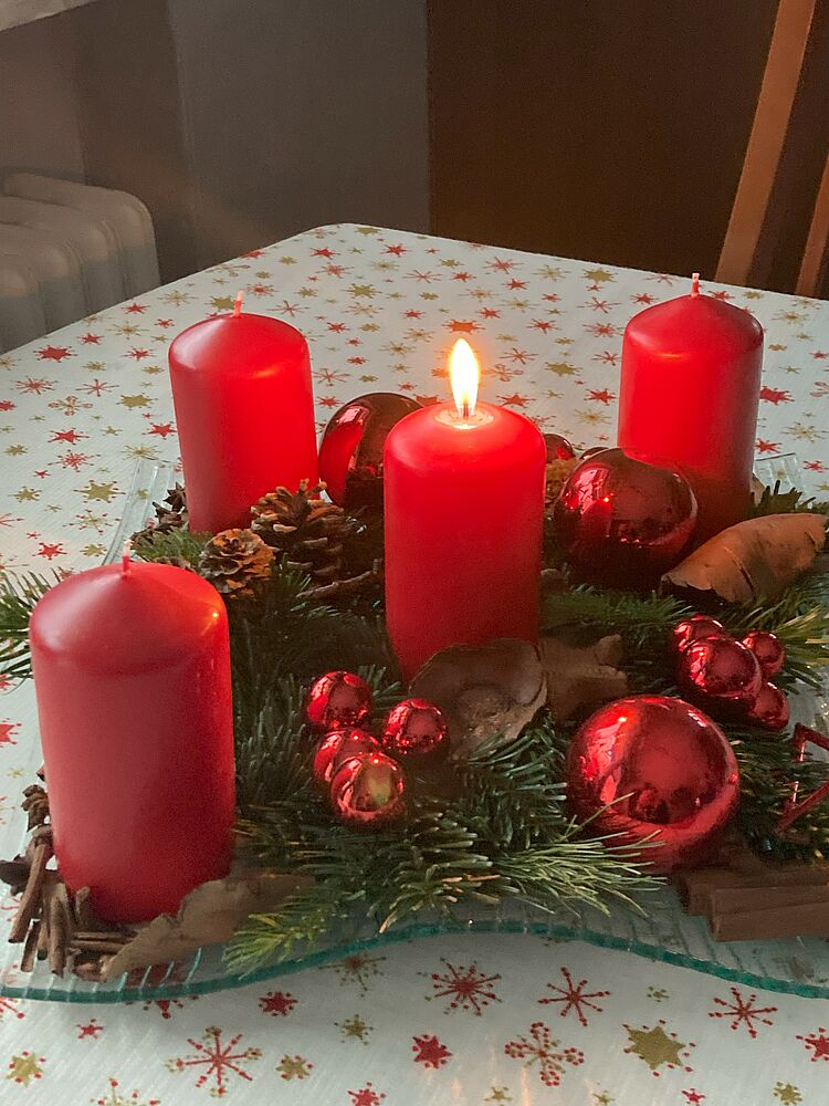 eine Kerze, (oder auch 4 Kerzen) Ihrer Wahl mit.