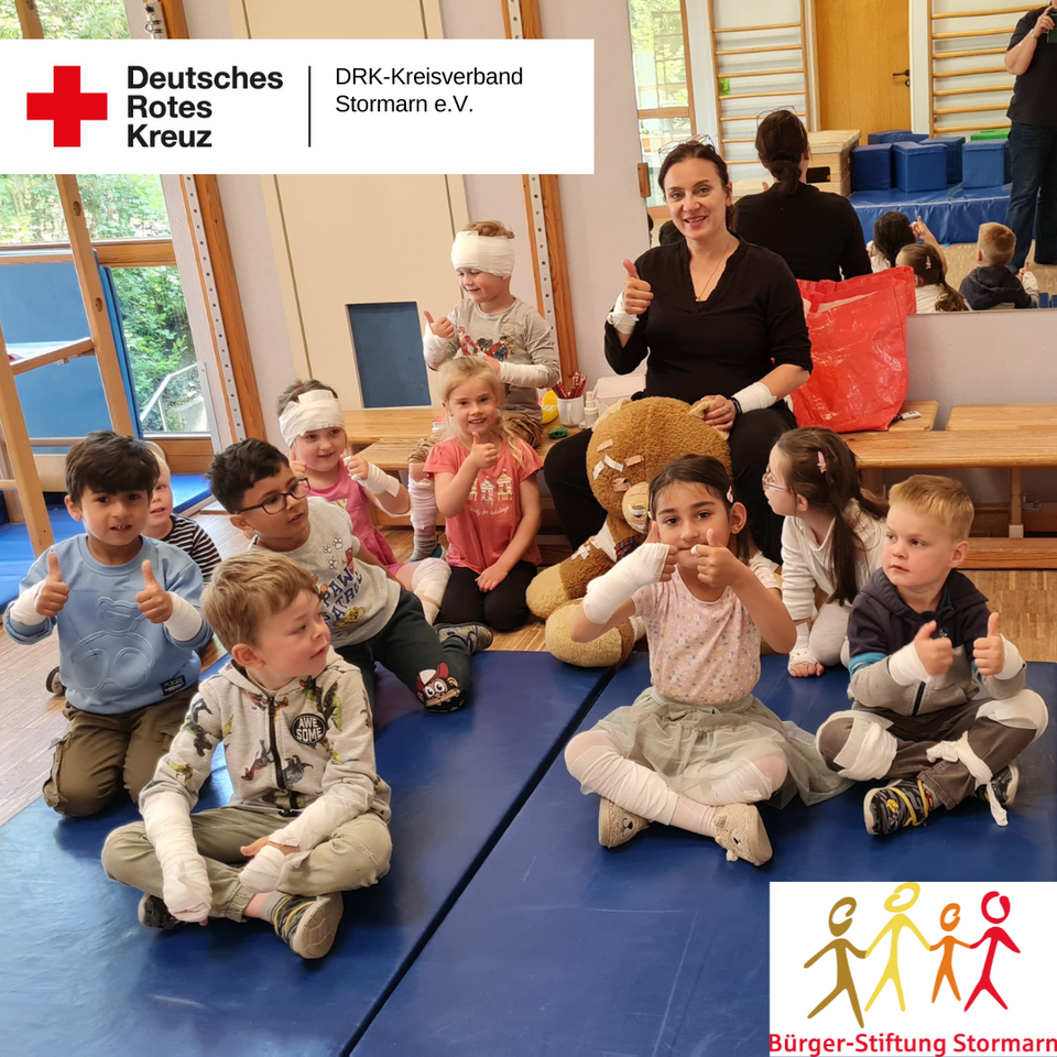 Der DRK-Kreisverband Stormarn startet seine Fortbildungs-Workshops "Teddy braucht Hilfe - Heranführung an die Erste Hilfe". Mit unseren Workshops wollen wir unsere pädagogischen Fachkräfte darin weiterbilden, wie man Kinder dafür sensibilisiert, dass Erste Hilfe Leben retten kann. Die Stiftung der Sparkasse unterstützt das Projekt und stärkt damit aktiv das Gemeinwohl in ihrer Region. Die Stiftung fördert schon seit vielen Jahren Weiterbildungsprojekte für Kinder und Jugendliche. Wir freuen uns, dass wir mit dem Workshop ˋTeddy braucht Hilfe' nun auch jüngere Kinder im Kindergartenalter erreichen und sie dabei unterstützen, mit Gefahrensituationen des Alltags besser umzugehen. Die Fördermittel ermöglichen Workshops, in denen den pädagogischen Fachkräften das Projekt vermittelt wird und Umsetzungsschritte in ihrer Einrichtung erarbeitet werden. Spielerisch wird dabei mit den Kindern geübt, was im Notfall zu tun ist.